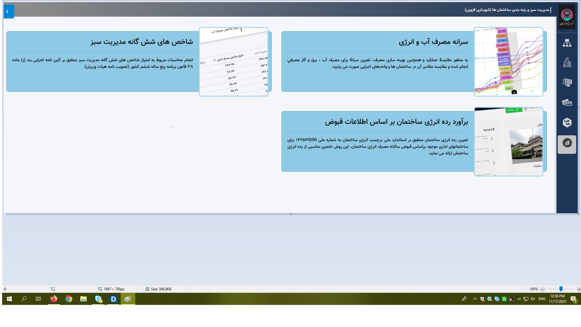 اسفندیاری خاطرنشان کرد: از دیگر امکانات و خدمات سامانه، می توان به محاسبه برچسب انرژی و ارائه بسترهای پرداخت یکپارچه هزینه ها اشاره کرد. همچنین مدیریت مصرف انرژی، سهولت و یکپارچه سازی در پرداخت قبوض انشعابات و کاهش هزینه های سازمانی از دیگر اهداف راه اندازی این سامانه به شمار می رود.